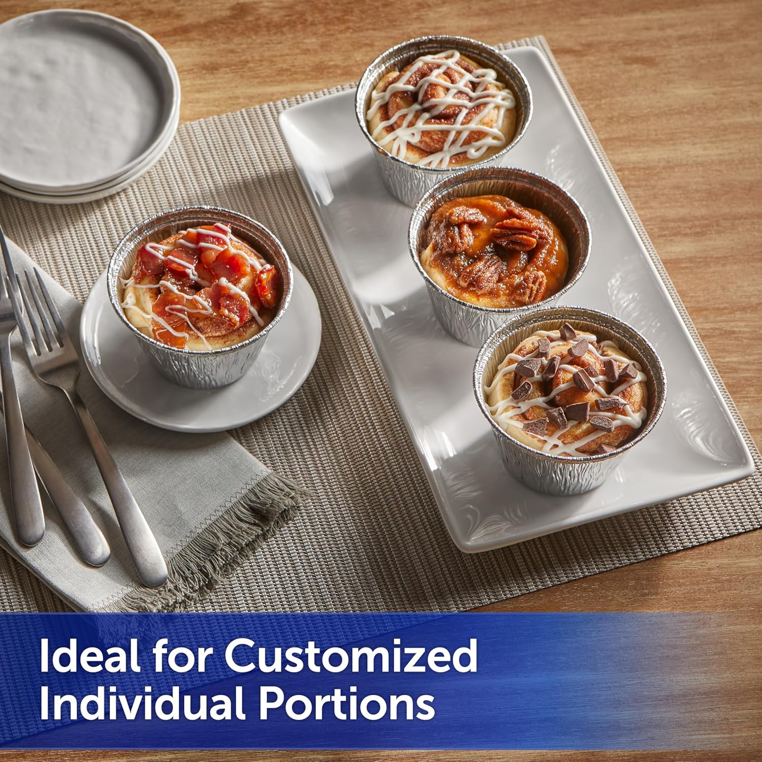 - Customized Cooking—These foil cups let you individually portion meals, making them ideal for meal prep, picky eaters, and catering to dietary restrictions