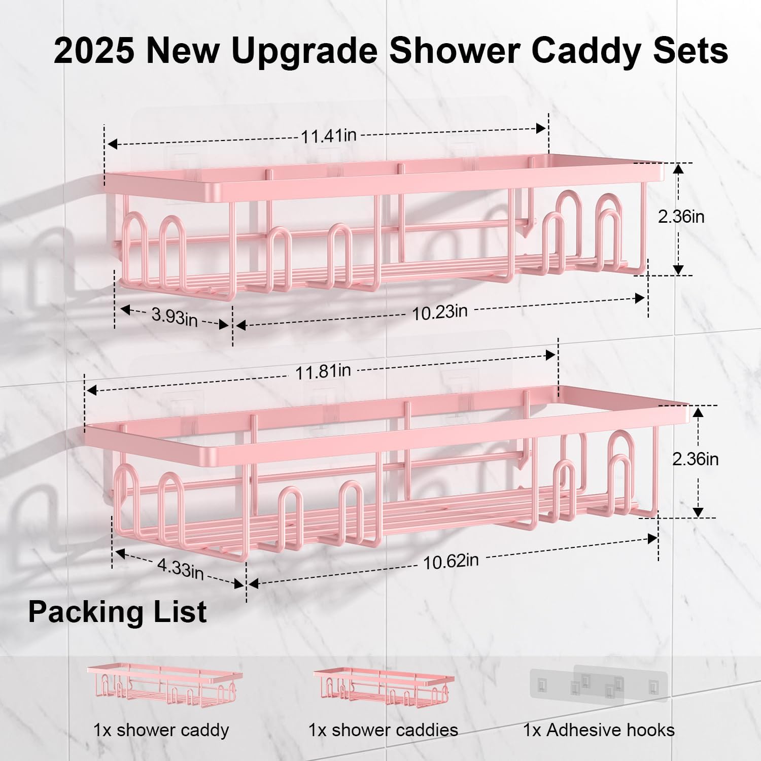 - 【Package Contents & 7/24 After Service】- 2 Excellent shower caddies and individually each shelf comes with integrated 8 hooks, 2 x 3M strong adhesive and 1 x user manual. If you need it, we will help you solve the problem within 24 hours and fully resolve it within 7 days. This is what Getsrichfc should do