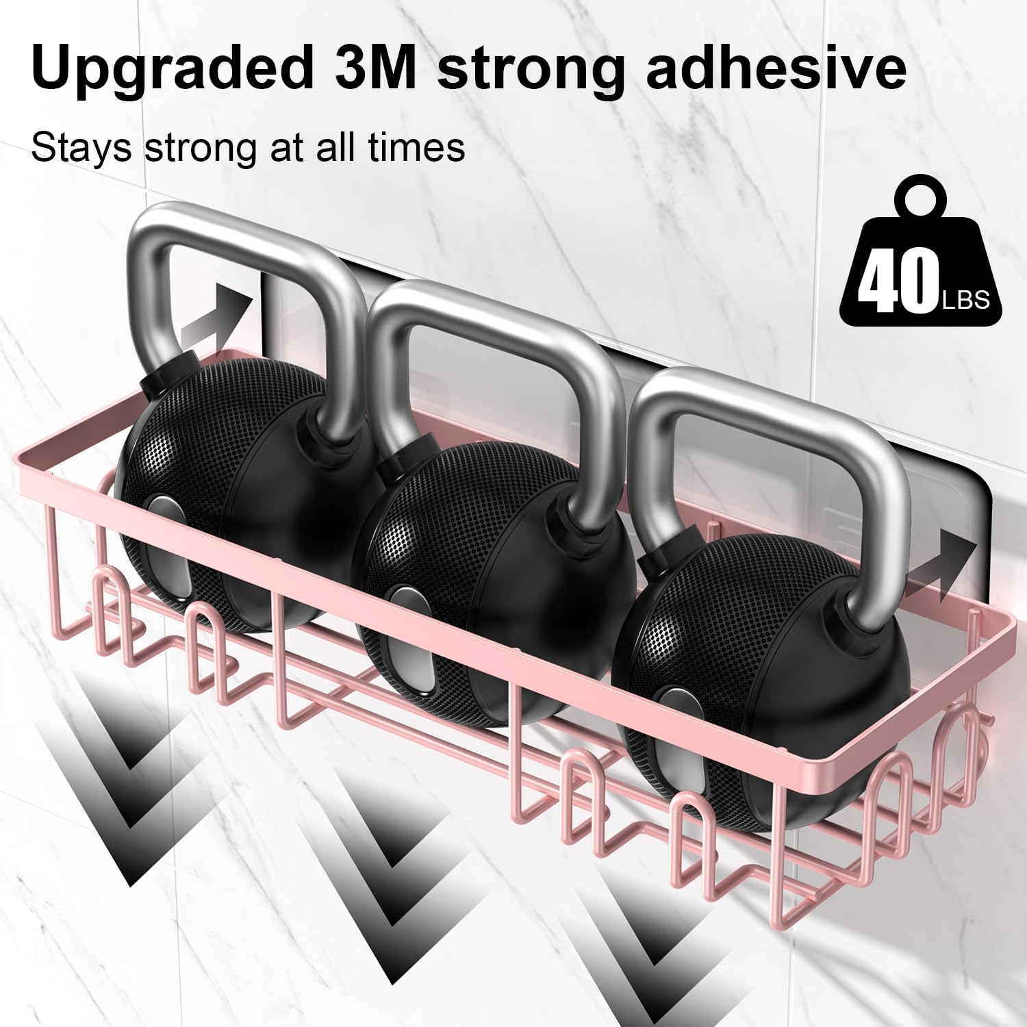 - 【Maintain Balance and Absolute Stability】- The newly upgraded 3M Clear No-Scratch Adhesive is ultra-reliable and can hold up to 40 pounds. Which is equal to 16 bottles of 35oz shampoo/ shower gel/ body lotion weight. Keep the tins and bottles in the bathroom shelf organizers, and make them easy to fetch and use. Never worry about falling issues after proper installation