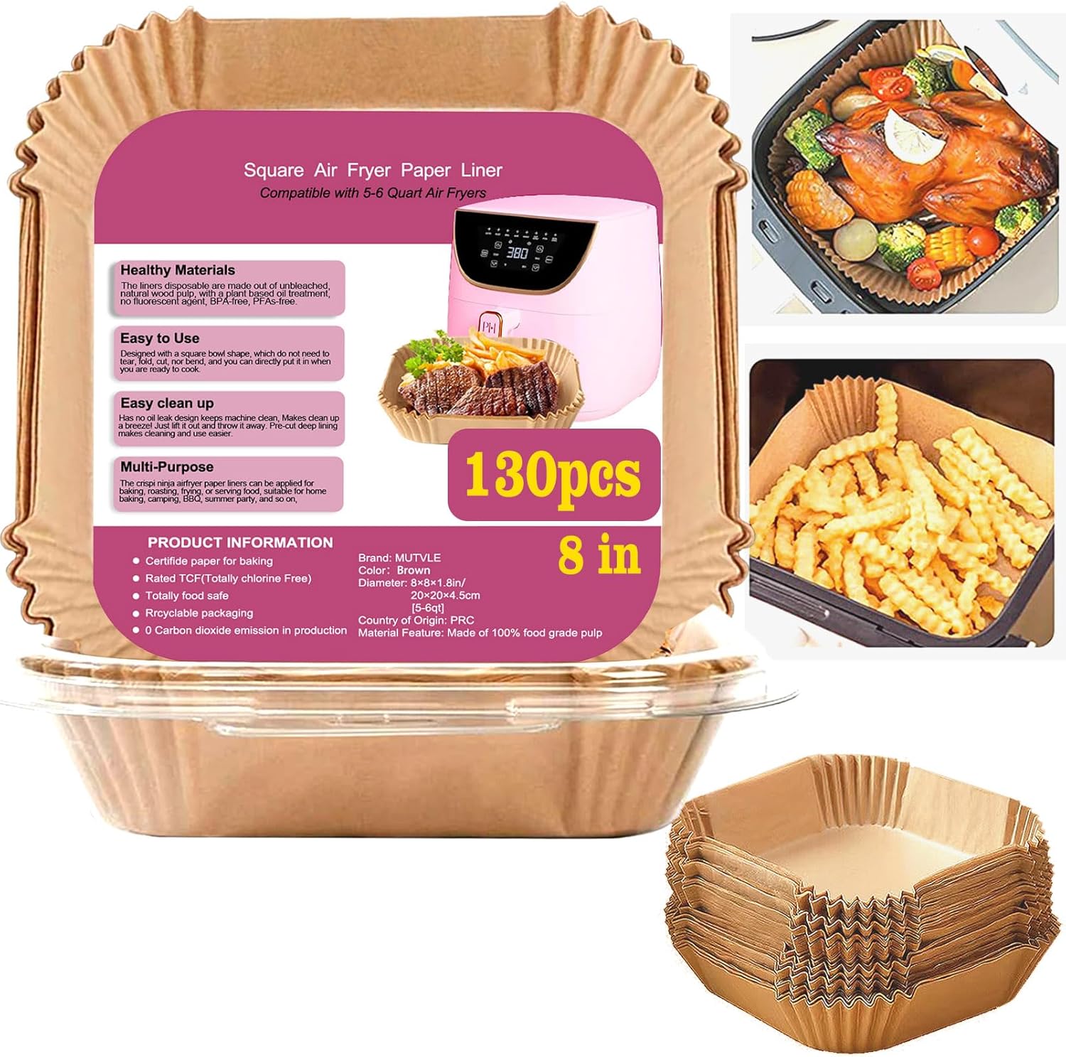 Air Fryer Liners for Pink Air Fryer, Paper Liners Disposable for Paris Hilton air fryer, White Air Fryer, Beelicious Air Fryer, 8 Inch 130PCs Square Food Grade Parchment Paper