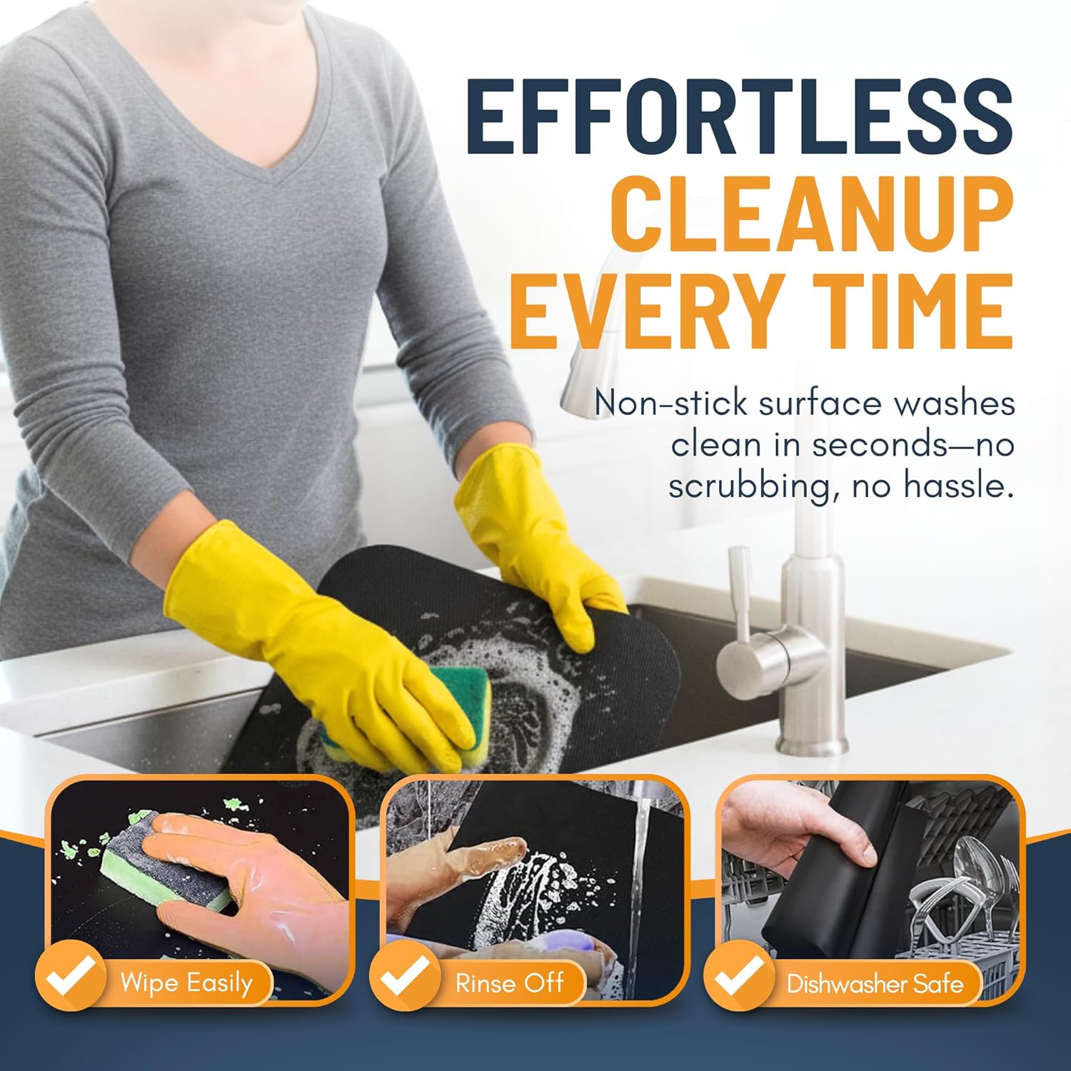 - EASY CLEANUP & MULTI-PURPOSE DESIGN: Make cleanups effortless with these reusable air fryer oven liners. Their non-stick surface makes wiping away food residue simple, and they can also double as baking mats, allowing you to cook directly on them. A cost-effective alternative to single-use parchment paper, these toaster oven liners and toaster oven mat liners are built to last, providing a versatile addition to any kitchen
