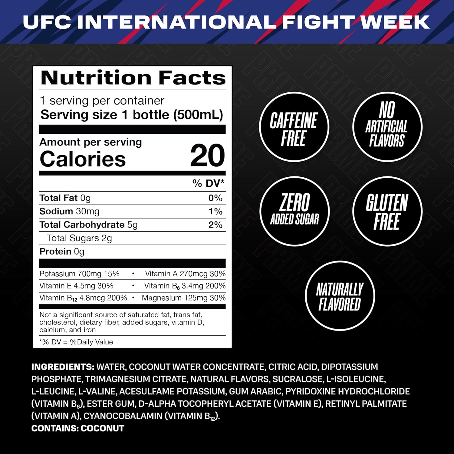 PRIME Hydration UFC, Sports Drinks, Electrolyte Enhanced for Replenishing Fluids, 250mg BCAAs, B Vitamins, Antioxidants, Low Sugar, 16.9 Fl Oz, 12 Pack