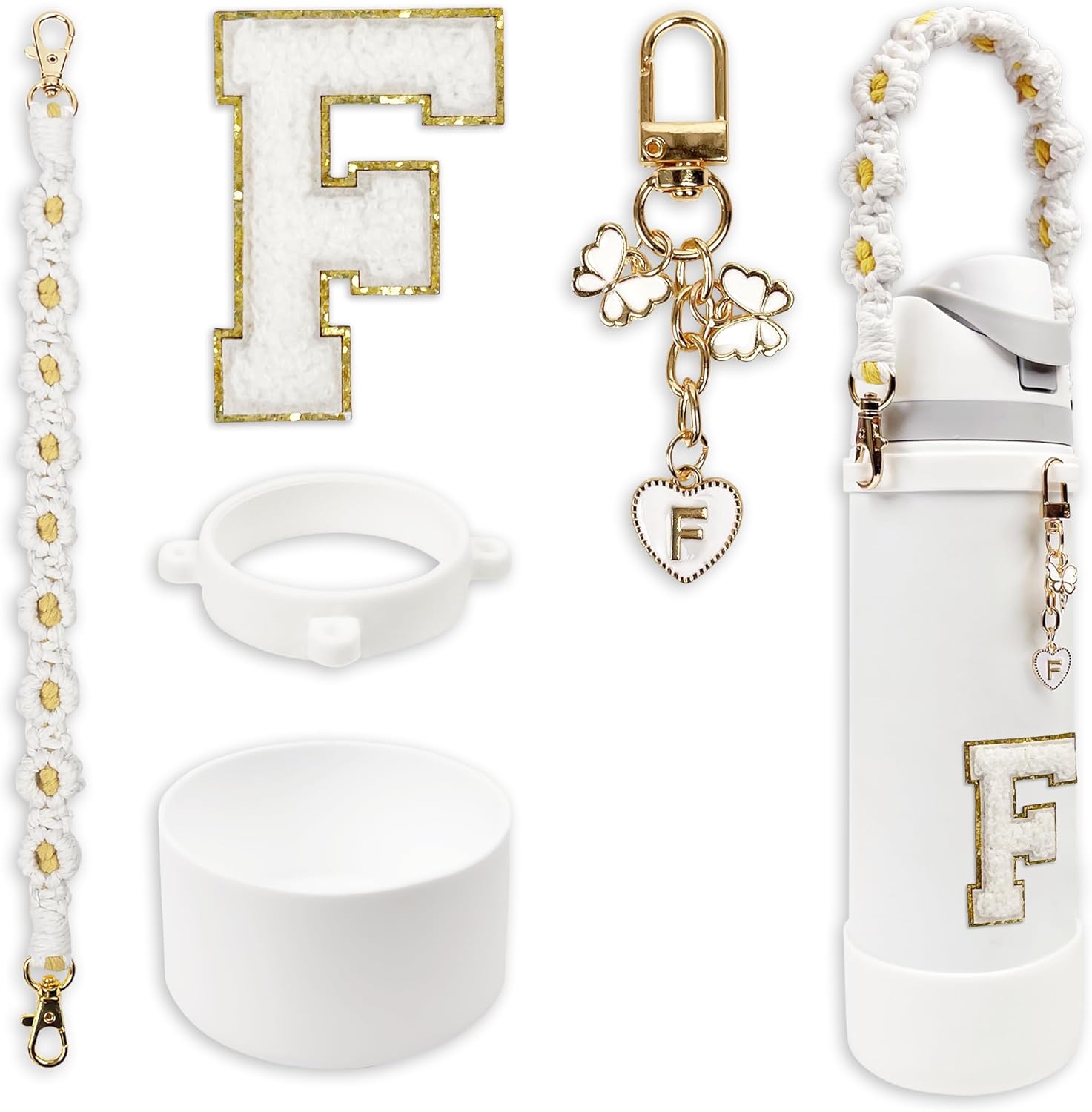 • Unique Design: Our set features a sturdy and secure silicone ring to prevent breakage, along with a handcrafted Bohemian-style handle strap, a monogram tag, and letter stickers. It’s both stylish and practical, making it an essential addition to your gear
