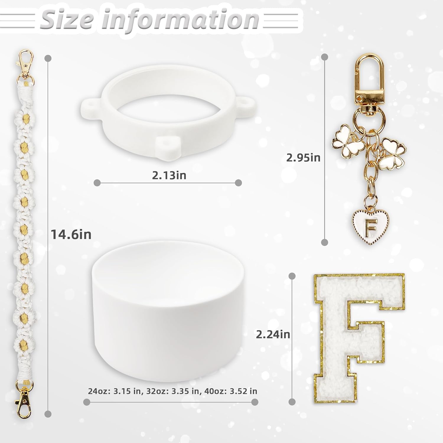 • Compatibility: This set includes a perfectly fitting silicone boot for Owala FreeSip 32 oz and Owala Tumbler 32 oz, along with a handle strap, letter stickers, and a letter keychain