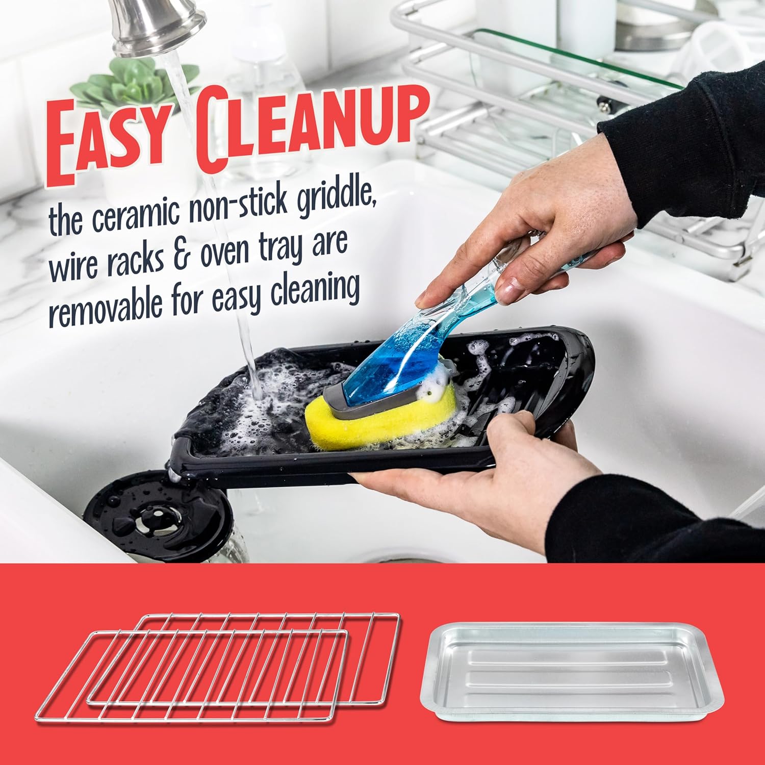 - CERAMIC NON-STICK GRIDDLE: Made with clean and eco-friendly ceramic material, easily to flip and stir eggs and more on the griddle surface which comes with a glass lid and cool-touch handle.