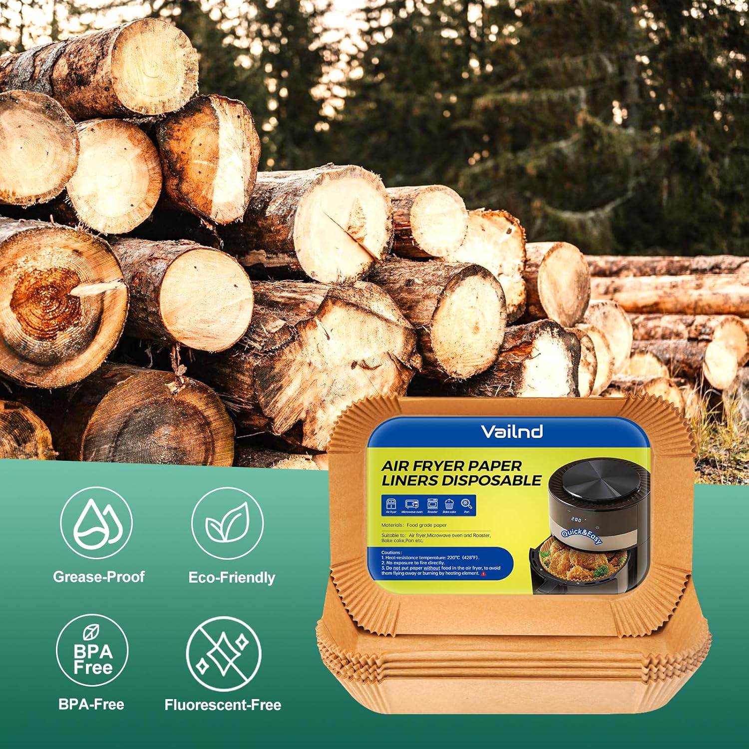 - Strong Thick Liners: Heat proof, these air fryer liners can withstand temperatures up to 428℉. Water-proof and oil-proof, they won't tear or get damaged while baking or roasting.