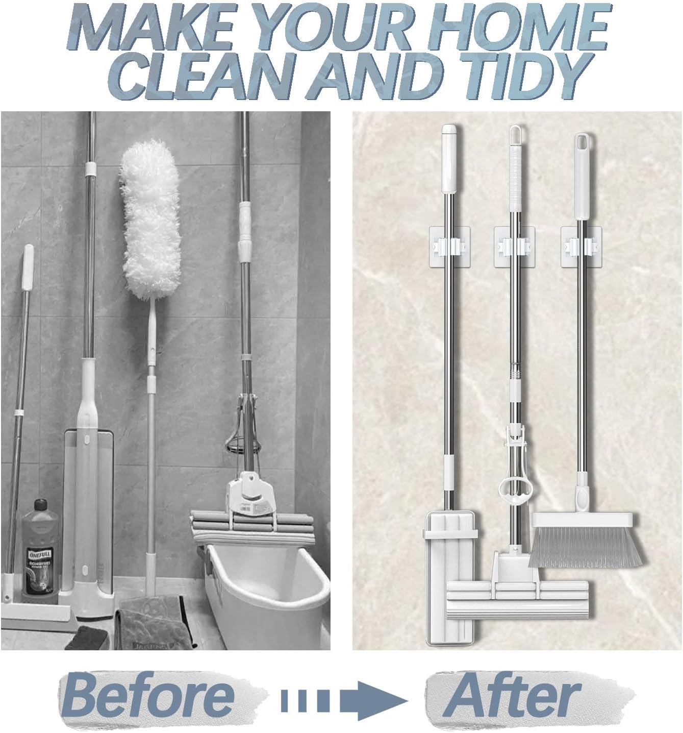 - ✅【Space-Saving Vertical/Horizontal Mount】Free up floor space in closets, laundry rooms, or entryways. Non-slip texture keeps brooms firmly in place.