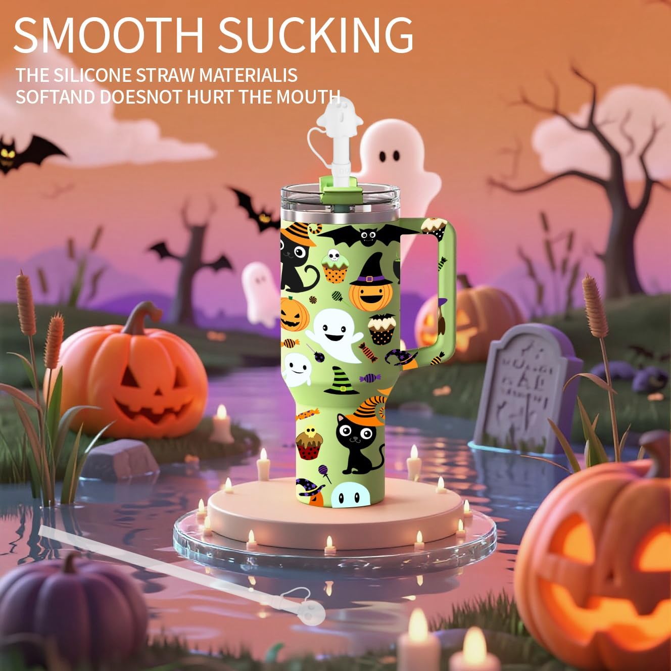 Halloween Party Favors 2025, Doboli Replacement 12 Inch Long Silicone Straw With Cover, Compatible with Stanley Owala 40 oz 30 oz Cup Tumbler, Funny 6 Pack Reusable Straw with Cleaning Brush