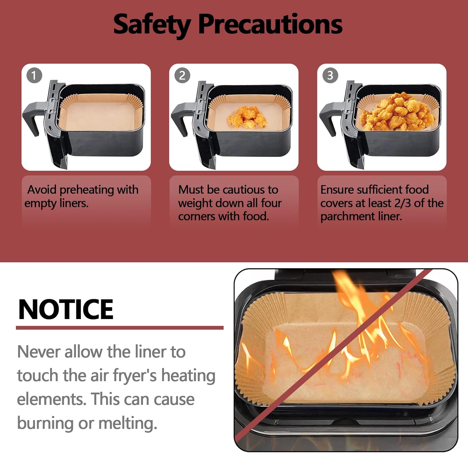 - Heat Resistant Airfryer Liners: Withstand temperatures up to 420°F, no tearing or burning, safe for use in air fryers, microwaves, ovens, steamers etc. NOTE: make sure at least two-thirds food on air fryer liners, and do not preheat the liner on its own