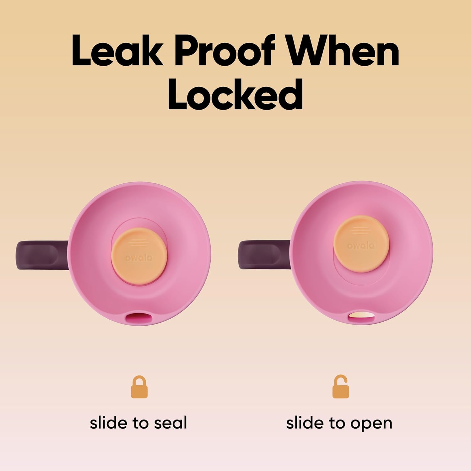 - 100% leak-proof lid for secure sipping: Sliding lock keeps drinks fully contained when shut; prevents spills in bags or cupholders; quick to open and close