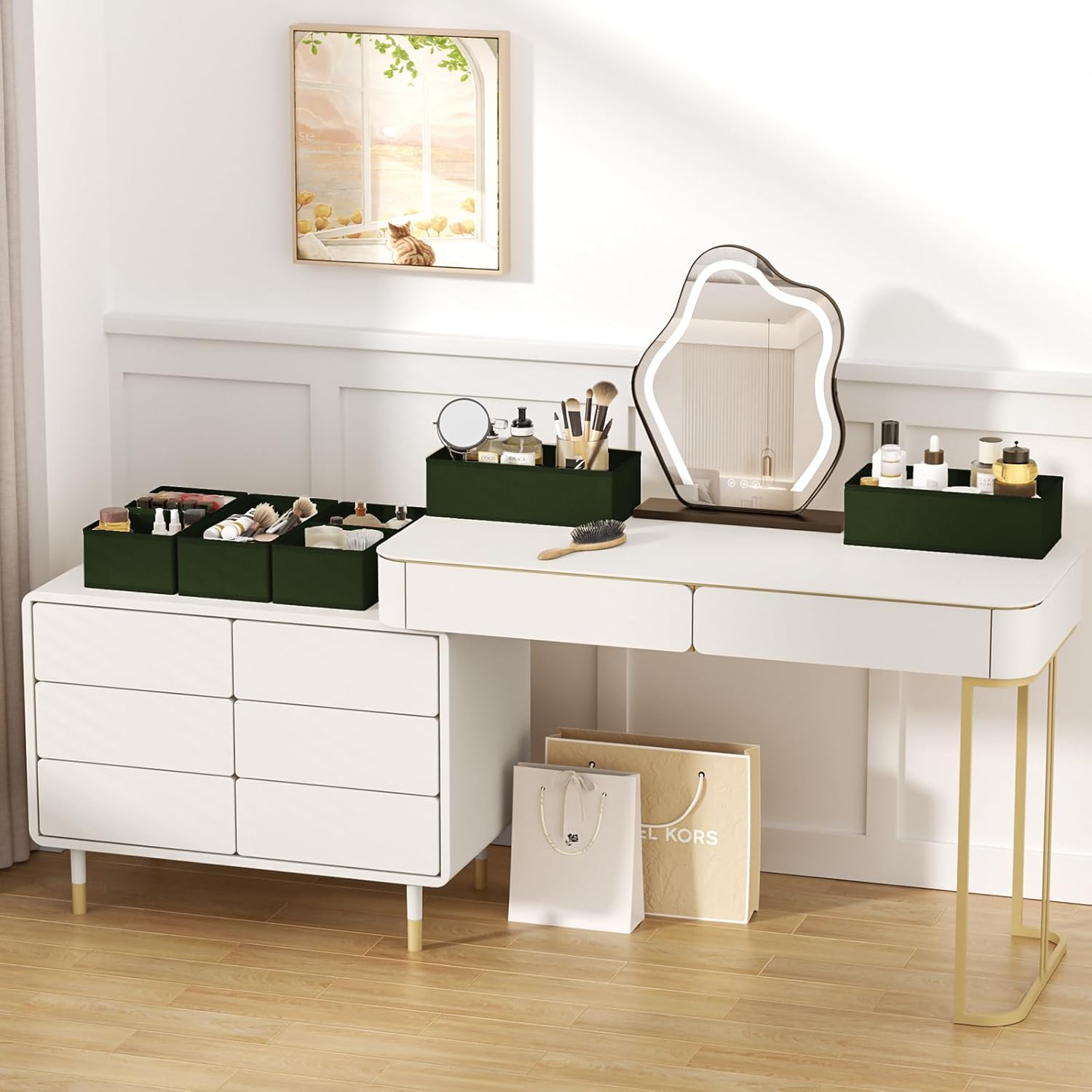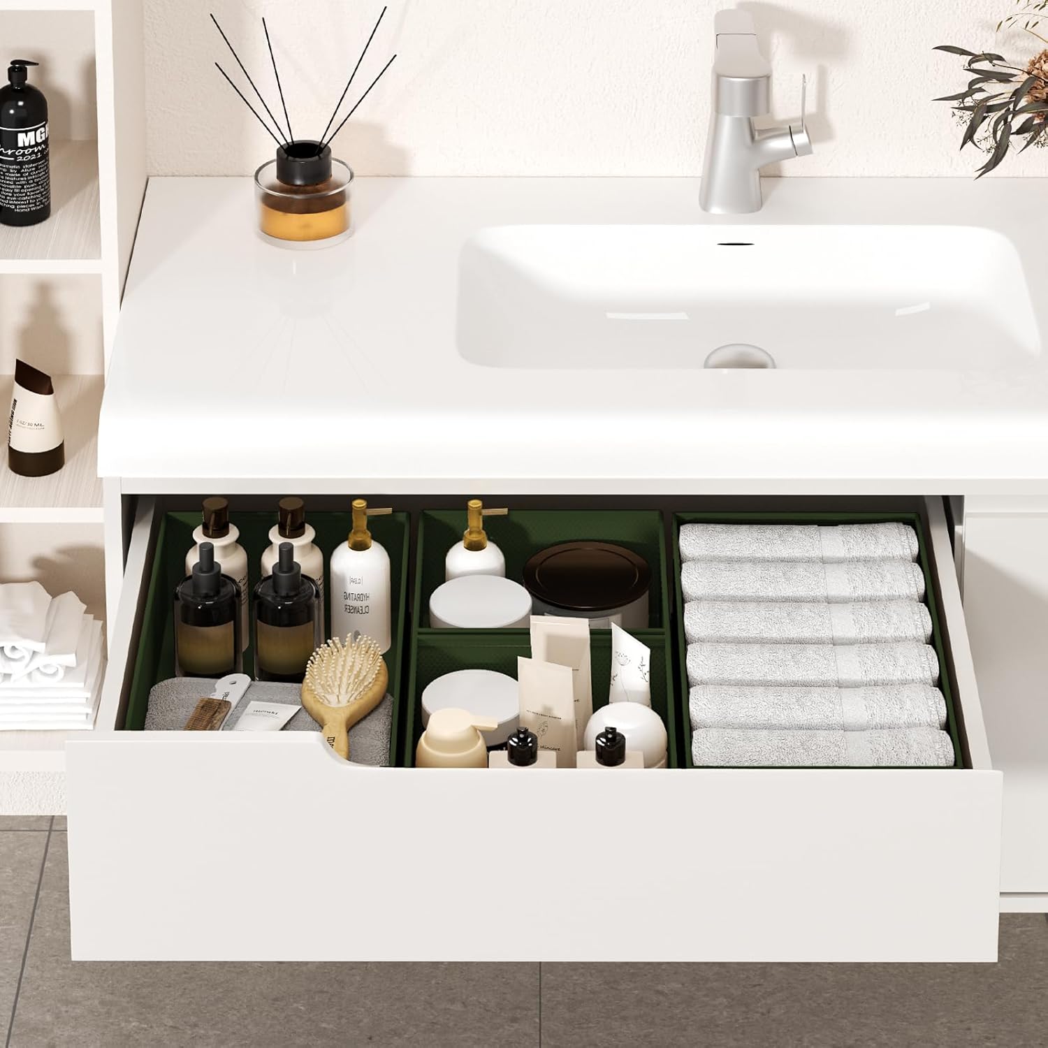 - What's Include: These Non-Woven fabric drawer organizer Includes 4 large square Drawer organizer bins,4 medium rectangular organizer bins and 4 small square organizer bins that can hold a variety of personal items. These Fabric foldable dresser storage fits all.