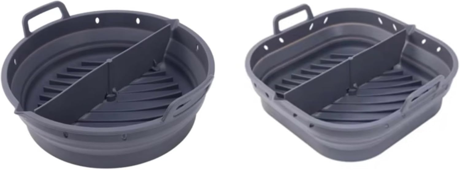 Reusable Silicone Air Fryer Liner –2pcs (Round+Square), Collapsible, Oil-Draining Design, Food-Grade, Non-Stick, Heat Resistant, Dishwasher Safe – Fits 5–8 QT Baskets (grey)