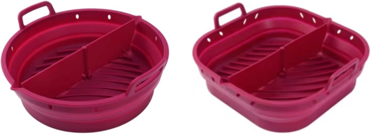 Reusable Silicone Air Fryer Liner –2pcs (Round+Square), Collapsible, Oil-Draining Design, Food-Grade, Non-Stick, Heat Resistant, Dishwasher Safe – Fits 5–8 QT Baskets (pink)