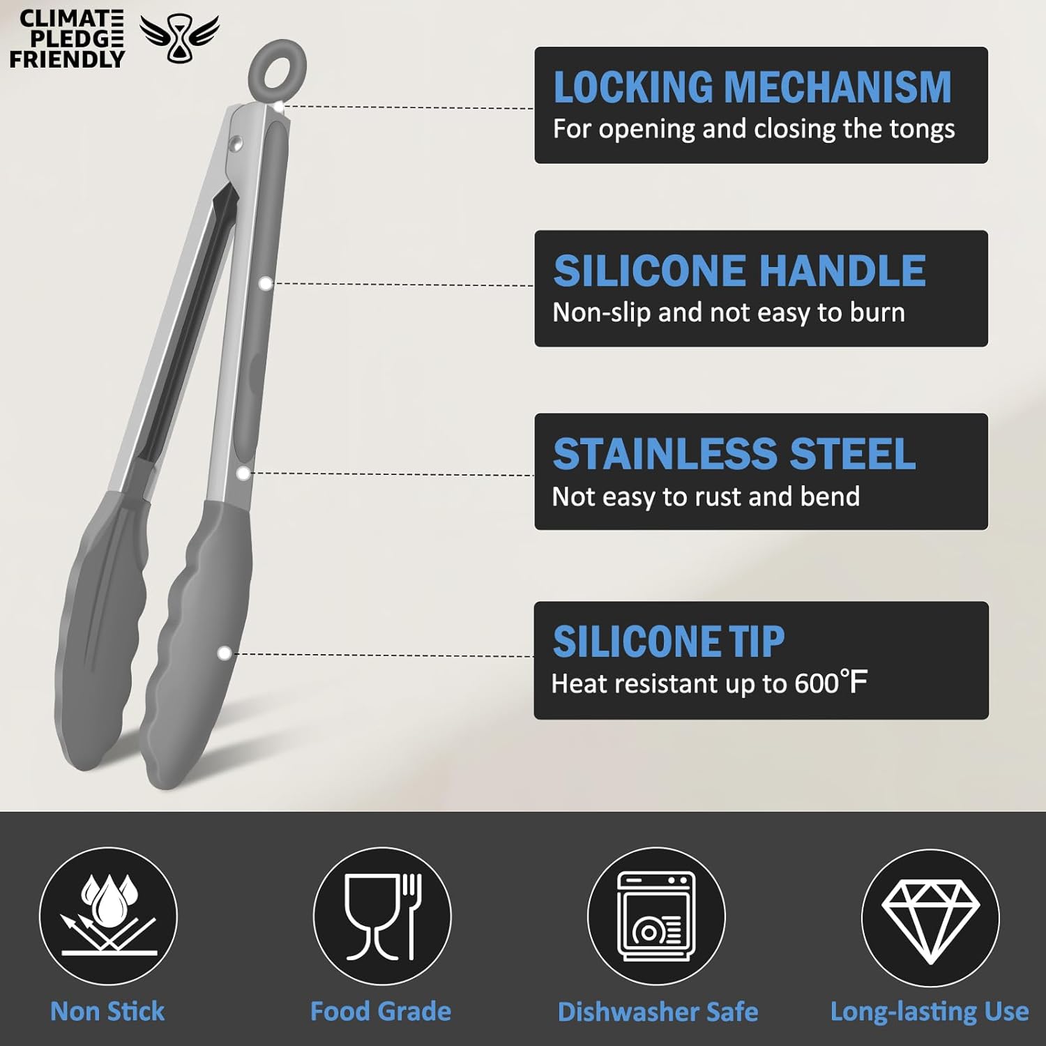- 600ºF High Heat-Resistant: The silicone tongs feature BPA free silicone tip that will not scratch your nonstick cookware. Scalloped edges securely hold food. EEKEDO Tongs are great for frying, grilling, stirring, and serving. Non-stick surface easy to rinse, dishwasher safe.