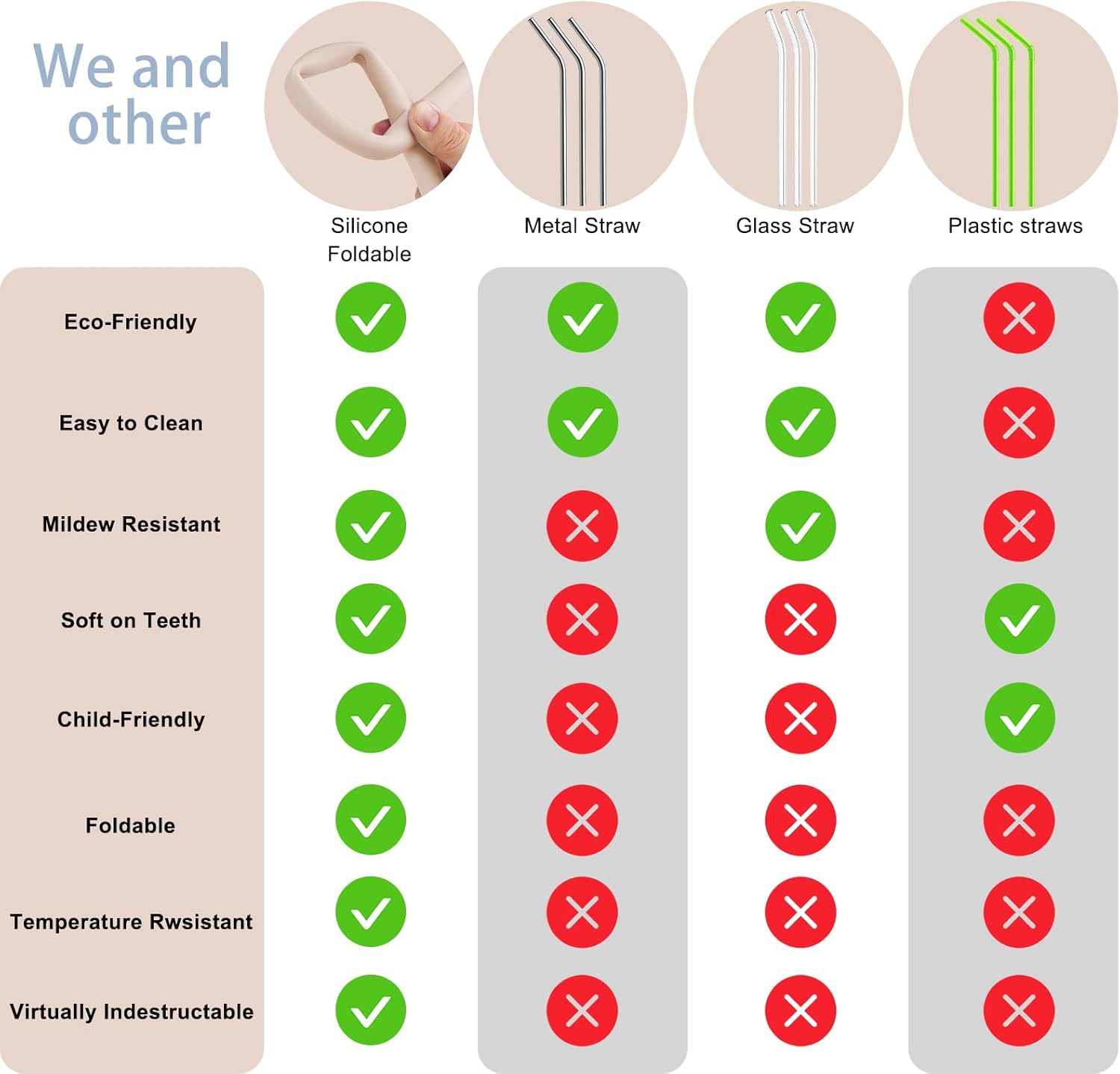 - Reusable Silicone Straws: Made from high-quality silicone, These straws are reusable and durable, It is without any odors or tastes. They're easy to clean and hand washable and dishwasher safe.
