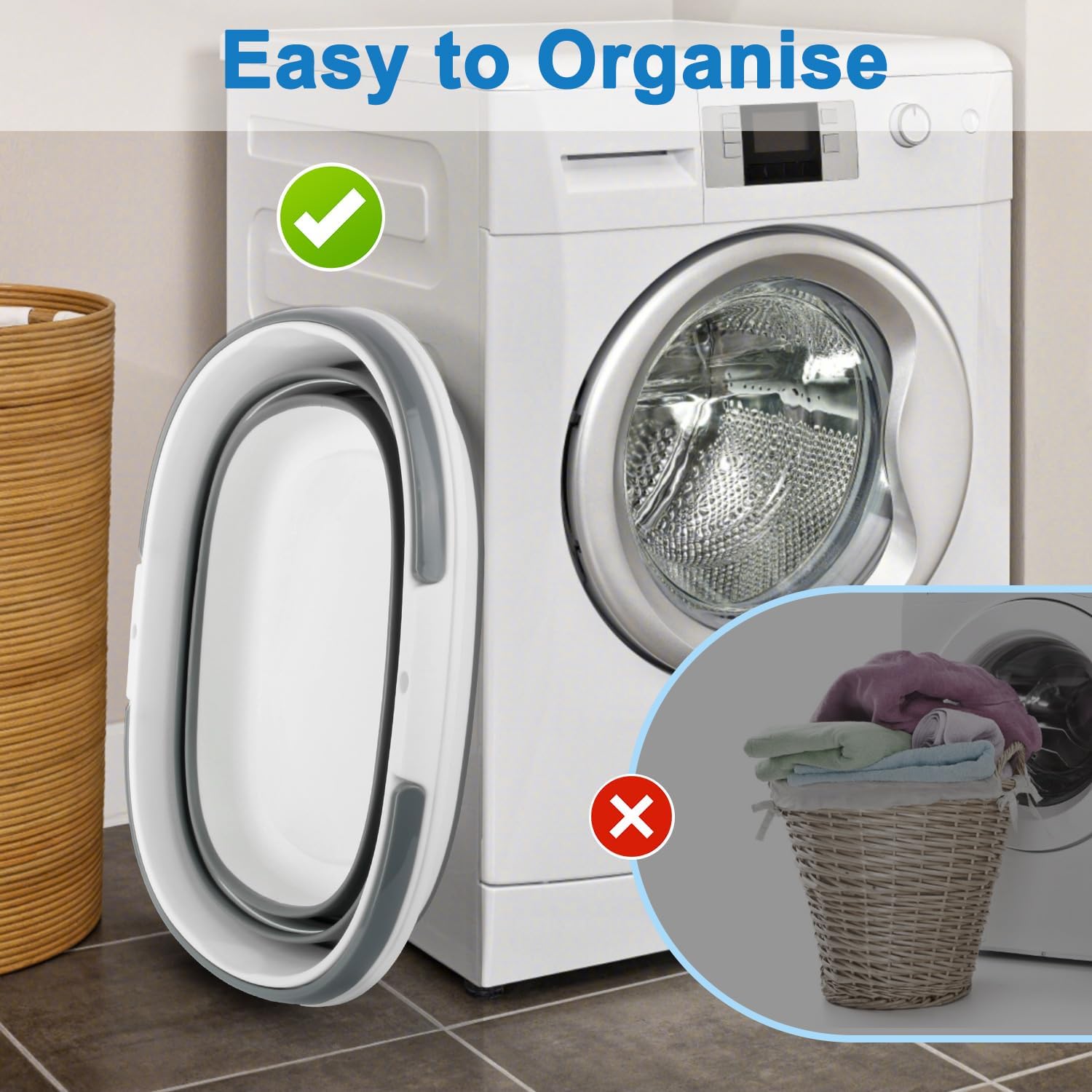 - Dirty Clothes Storage Basket:This silicone collapsible bucket can be utilized as a collapsible laundry basket or shower basket. It is very suitable for storing dirty clothes, towels or sheets in the laundry room, keeping the laundry room tidy. It is an essential commodity in everyday. The laundry hamper is perfect for everyday clothes organization, transport of laundry on washing days, temporary storage of clothes during season changes, and even for item organization and transportation when moving. The silicone design folds flat in seconds, perfect for saving space in small bathrooms and laundry room.