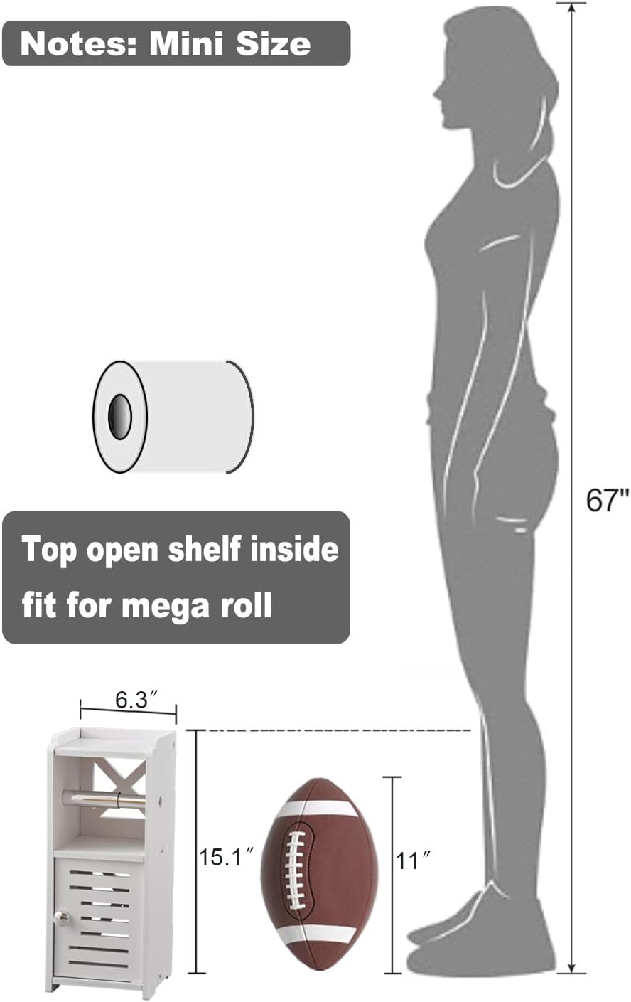 AOJEZOR Toilet Paper Holder Stand: Free Standing PVC Bathroom Cabinet - Small Bathroom Storage for Apartment Dwellers - White