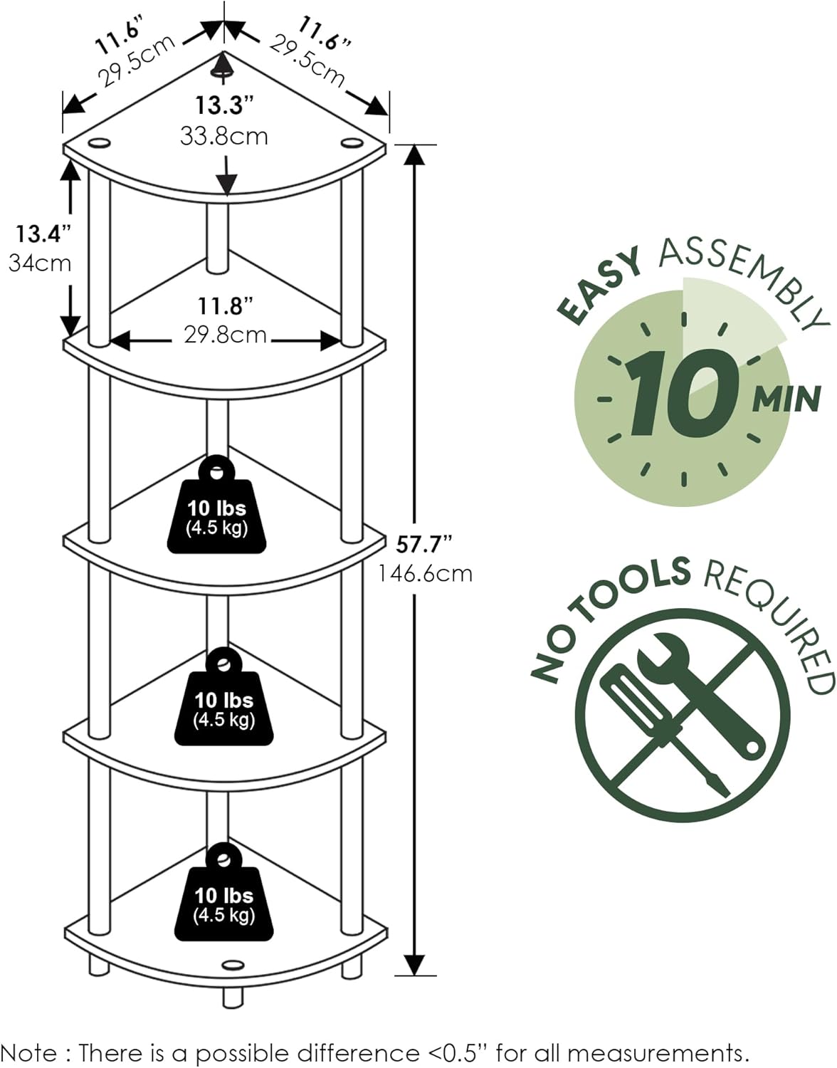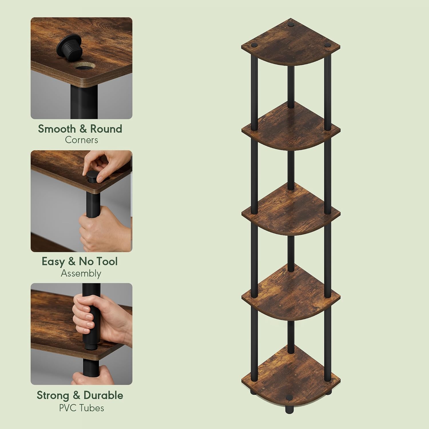 - SPACE-SAVING CORNER DESIGN: This corner shelf features a compact vertical profile that fits snugly into corners, making it ideal for apartments, dorm rooms, and small living areas