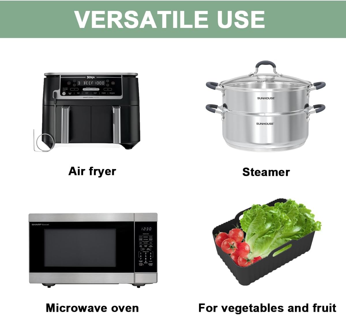 - ✅Versatile Use: This silicone air fryer basket is a must-have kitchen accessory, suitable for air fryers, microwaves, ovens, steamers, and more. It can be used for baking, grilling, frying, or serving food.