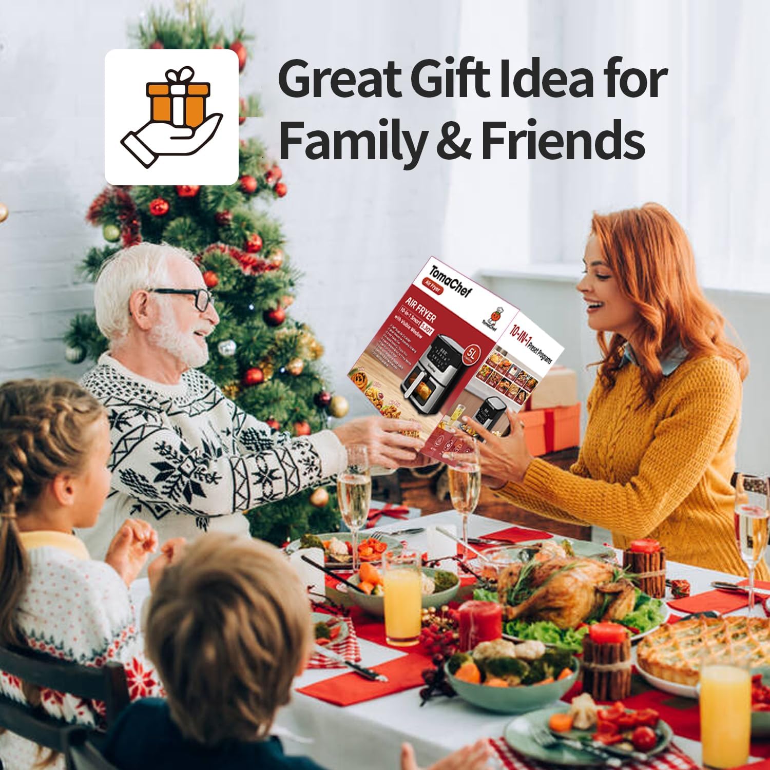 - TomaChef Air Fryer:Rapid heat circulation technology evenly distributes hot air for crispy, golden results with fewer flips. The built-in cooking light and viewing window let you check your food without losing heat.