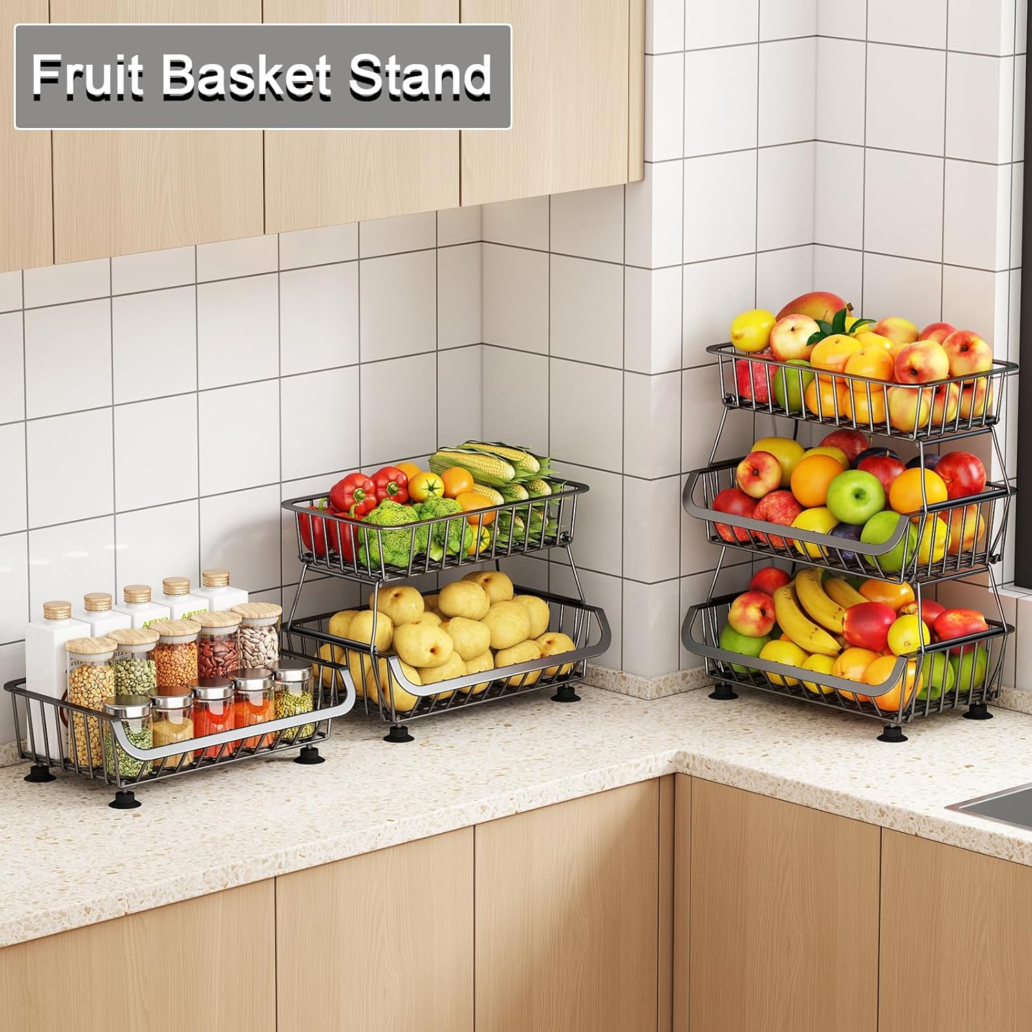 - Sturdy & Easy to Assemble: Our fruit basket stand made from durable metal with a sleek black powder coating, ensuring durability and strength. It can offer a strong load-bearing capacity without breaking or bending. Adopts a buckle design, no drilling or nailing necessary, can be completed within just a few minutes.
