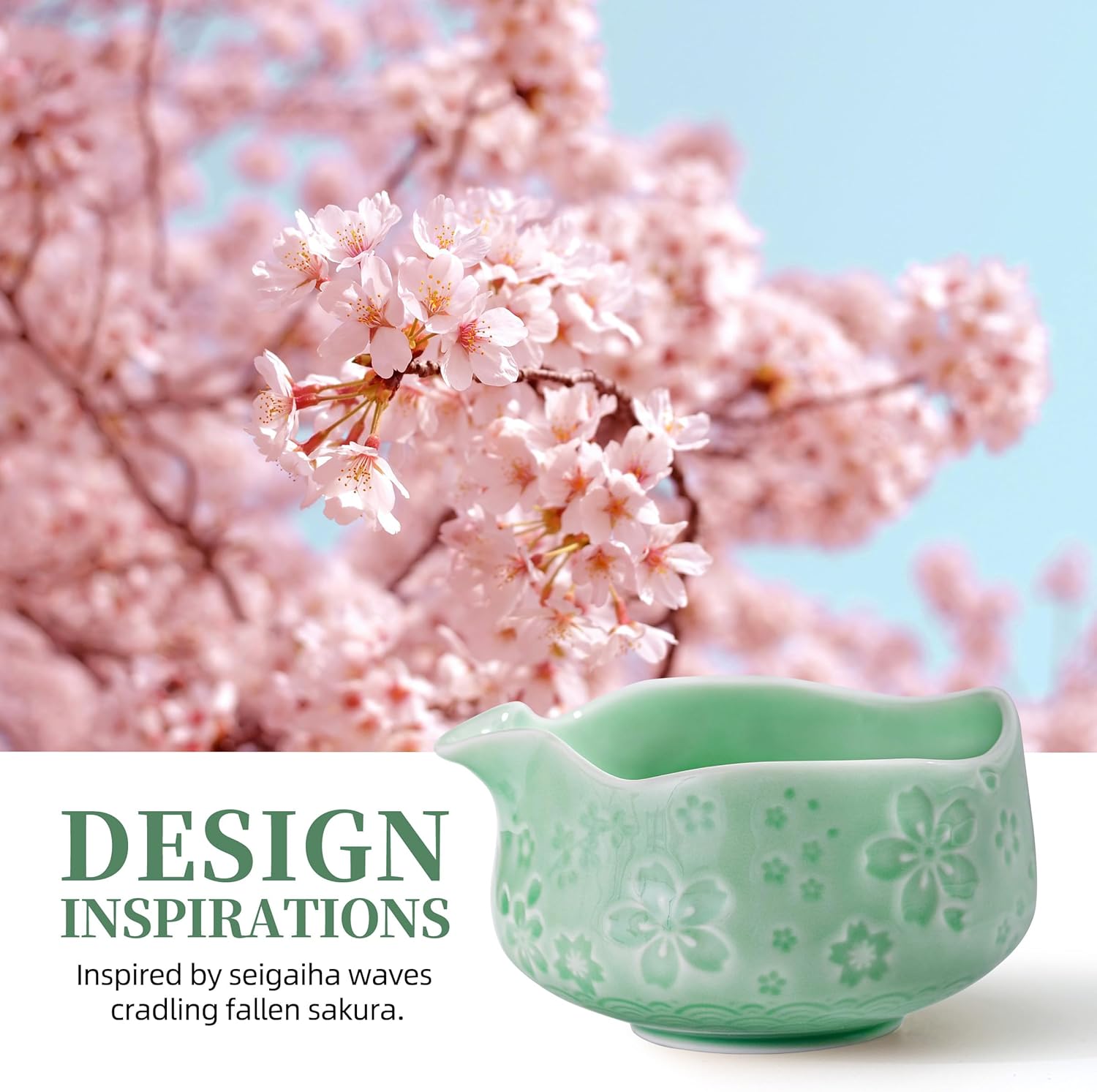- Design Inspiration: Inspired by Japan's cherry blossoms, we blend petal softness and natural texture into ceramic. The bowl rim’s wavy design and unique spout design add elegance, artistry, and functional sophistication, making this matcha set both a practical essential and a decorative treasure