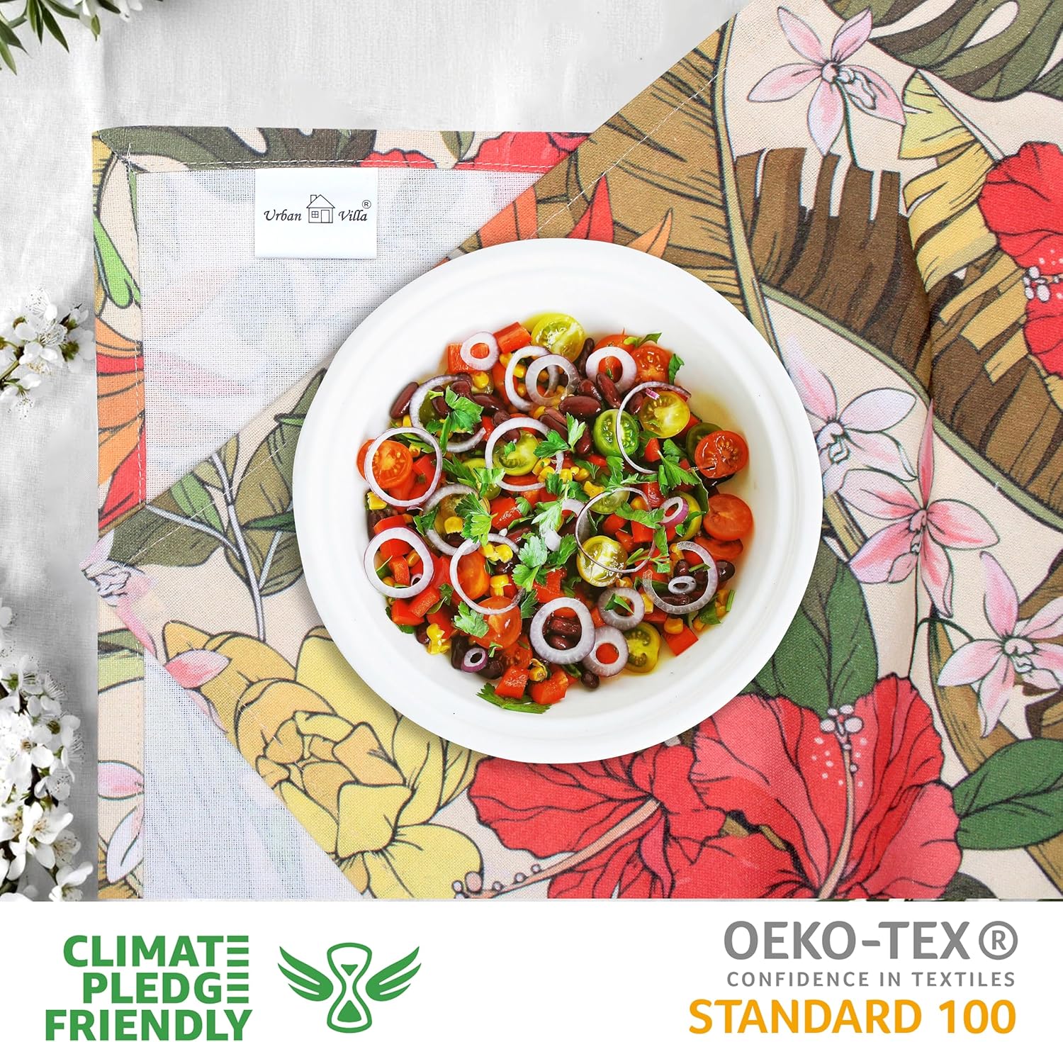 Urban Villa Kitchen Towels Set of 6 Hibiscus Print Kitchen Towels 20X30 Inches 100% Cotton Highly Absorbent Kitchen Towels Premium Quality Ultra Soft Mitered Corners KitchenTowels