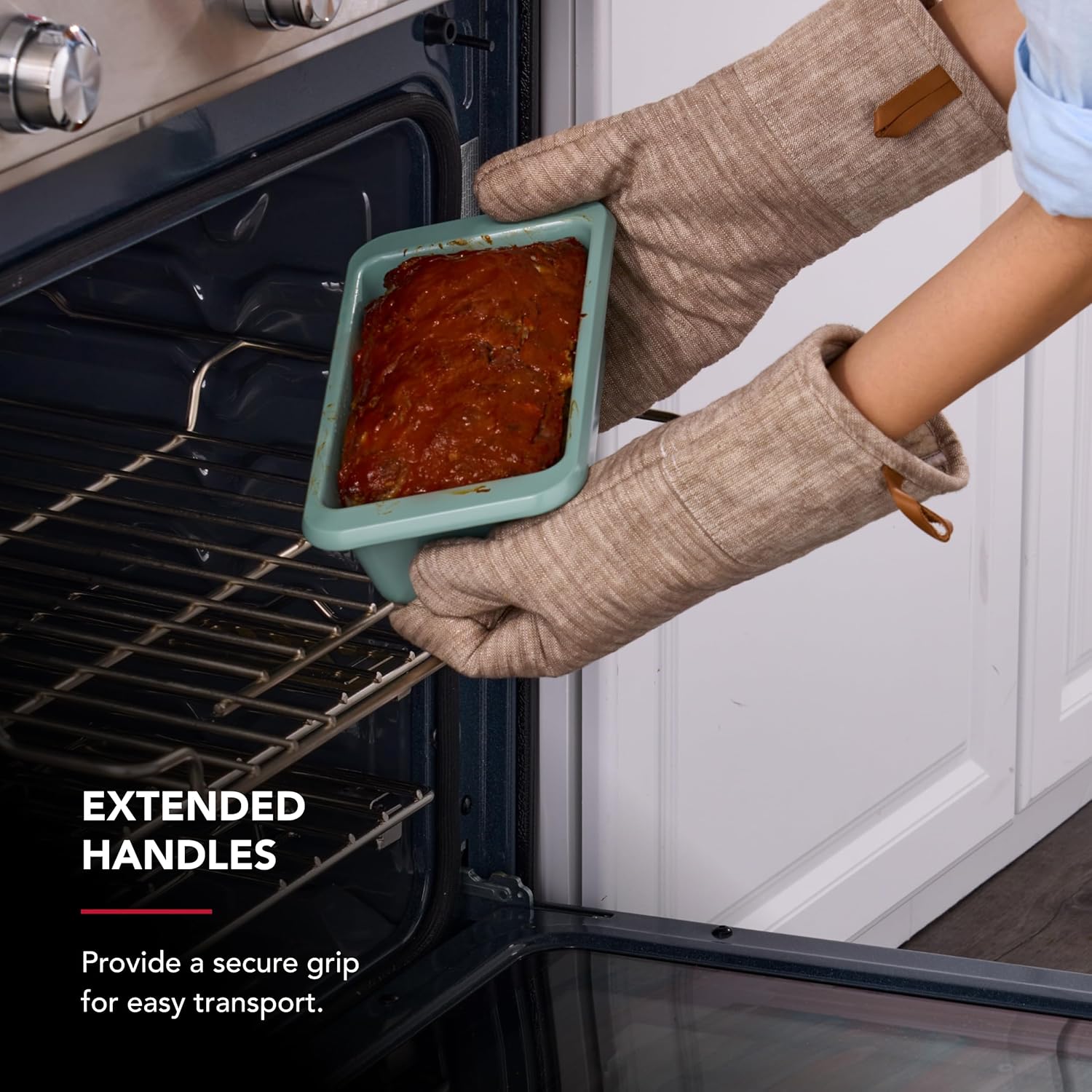 - EXTENDED HANDLES: provide a secure grip for easy transport, making transferring pan in and out of the oven safer and simpler, even when wearing pot holders