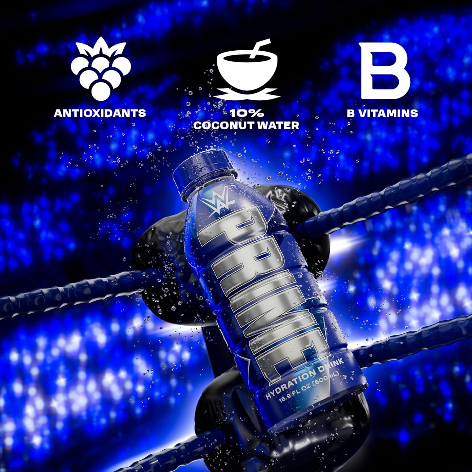 PRIME Hydration, WWE Sports Drinks, Electrolyte Enhanced for Replenishing Fluids, 250mg BCAAs, B Vitamins, Antioxidants, Low Sugar, 16.9 Fl Oz, 12 Pack