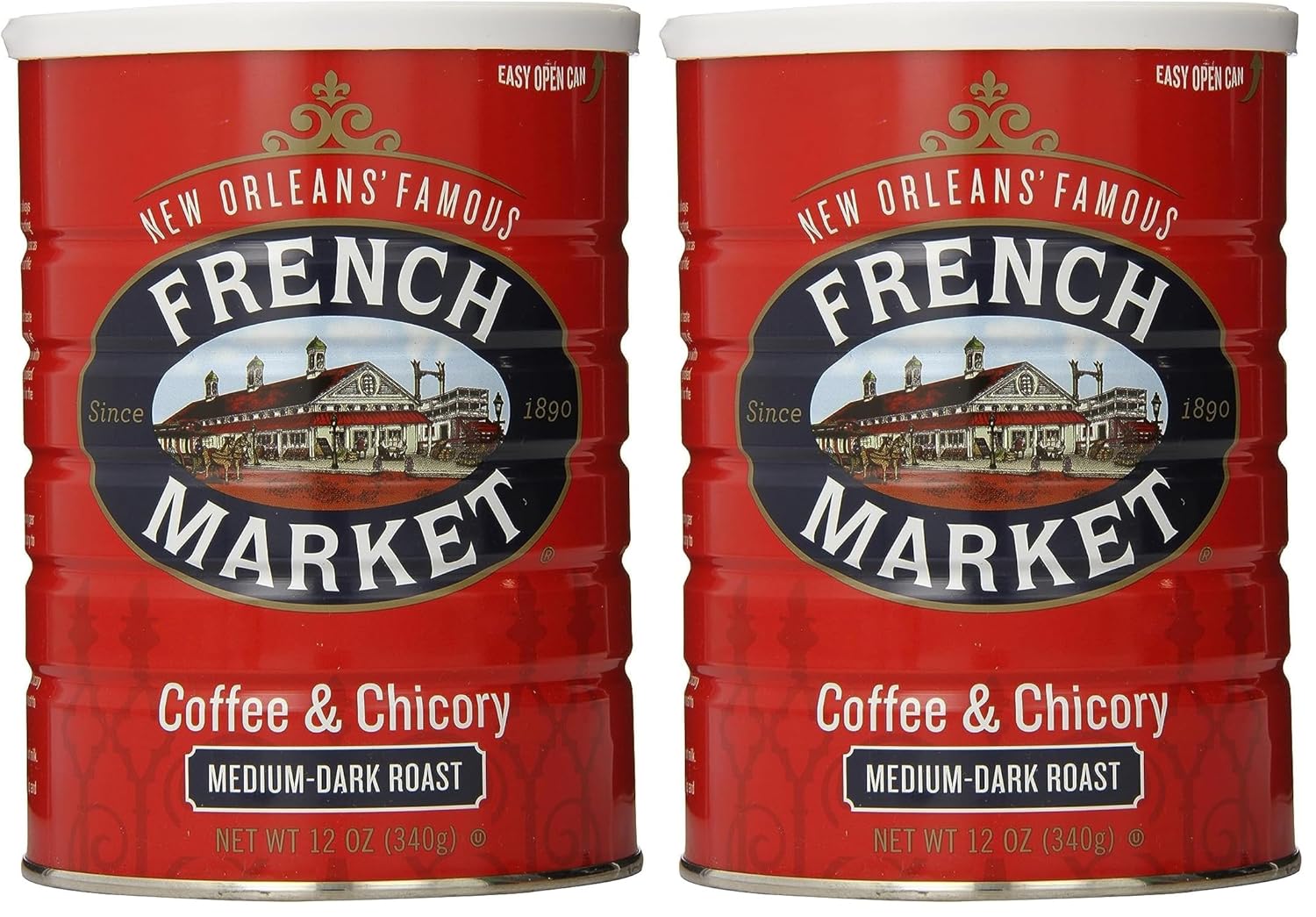 French Market Coffee & Chicory Medium-Dark Roast Ground Coffee, 12oz Can (Pack of 2)