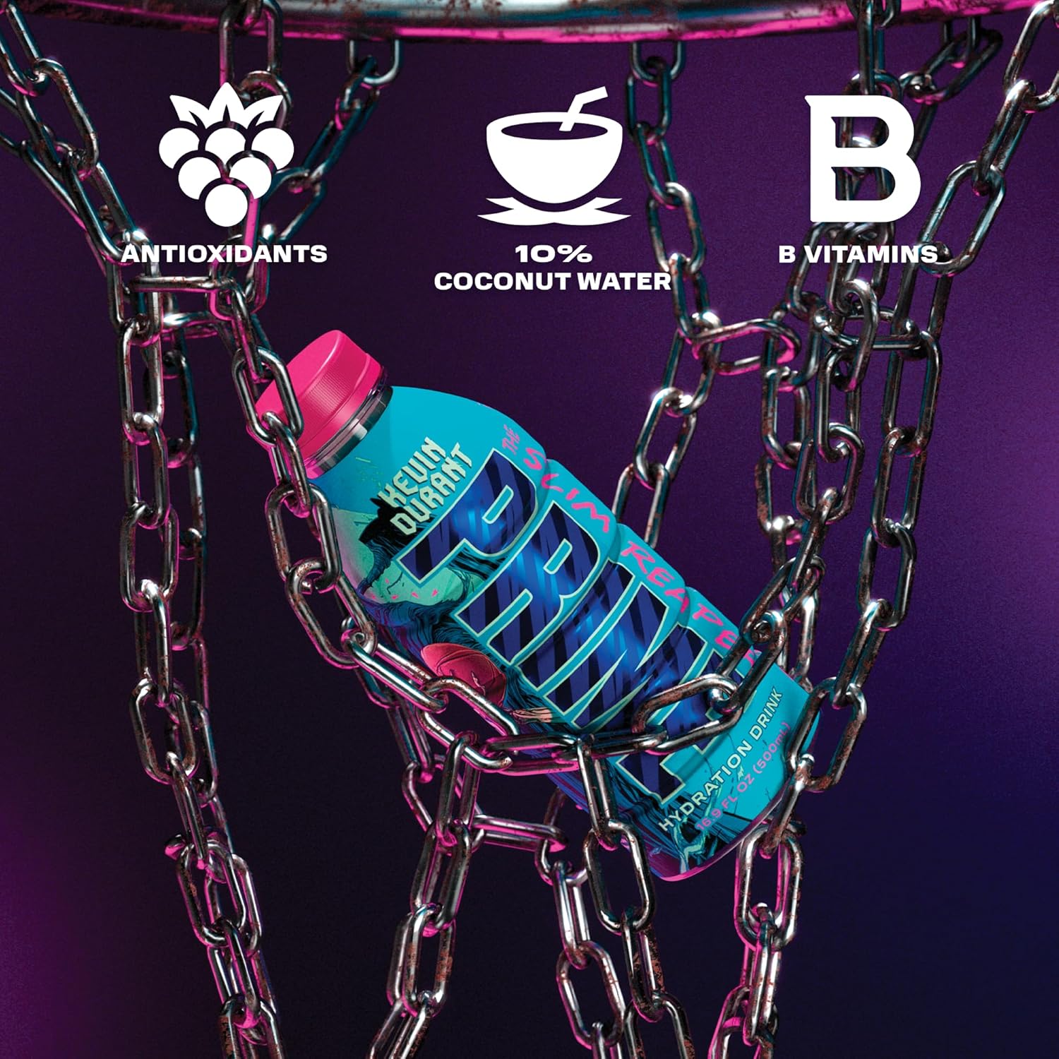 PRIME Hydration KEVIN DURANT Sports Drinks, Electrolyte Enhanced for Replenishing Fluids 250mg BCAAs, B Vitamins, Antioxidants, Low Sugar, 16.9 Fl Oz, 12 Pack